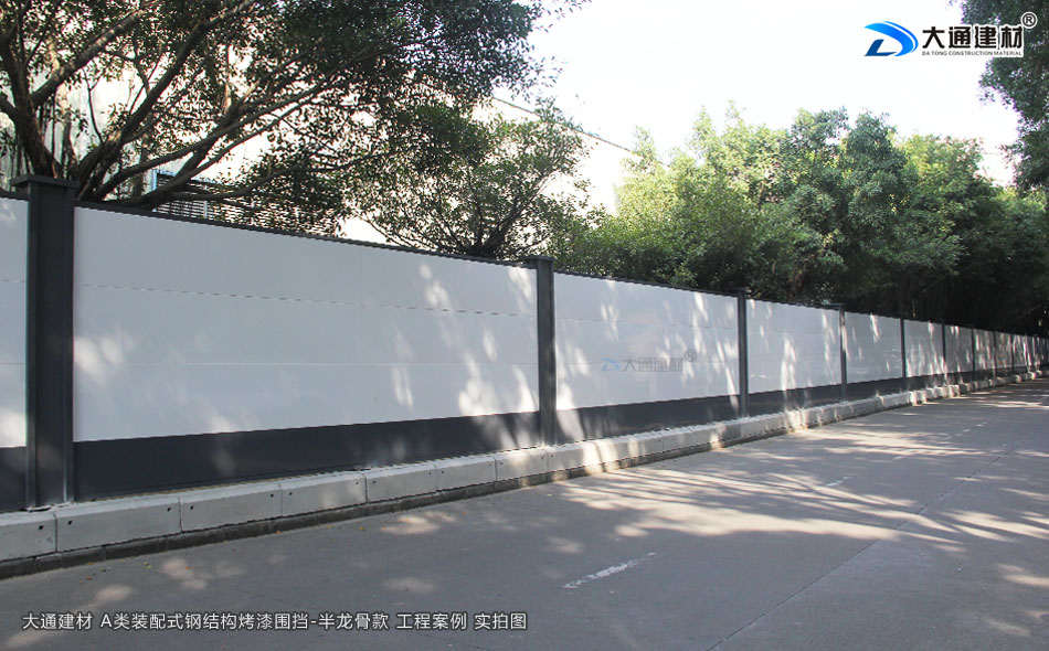 深圳市南山區西麗的城市改造項目工程使用了大通建材A類圍擋 鋼結構烤漆款+圍擋基礎墩,把施工現場的工地的外圍圍起來,在給施工現場建立一個可靠的施工環境的同時起到一定的美化、整潔、統一的作用…