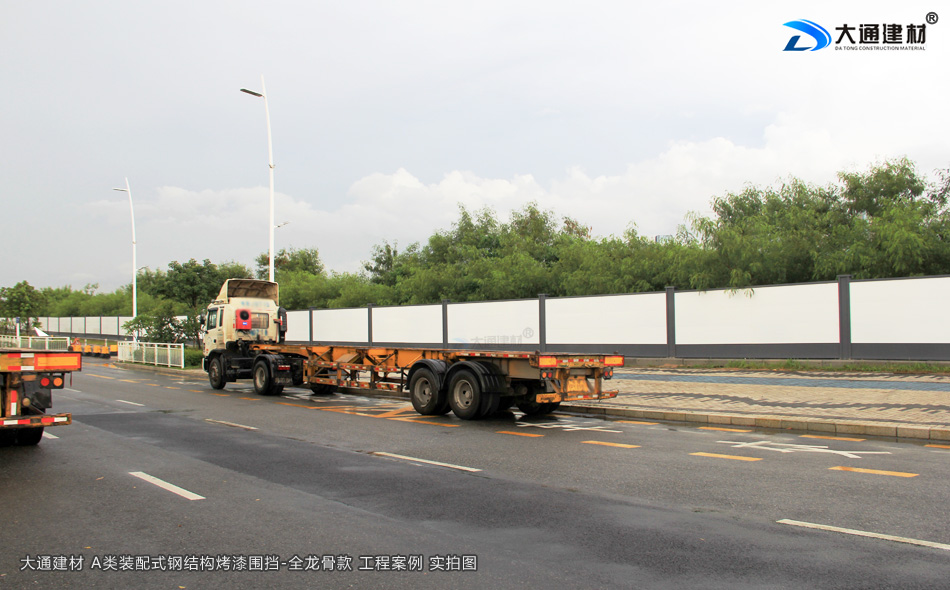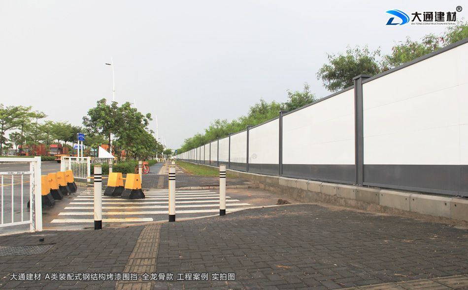 深圳城市建設(shè)項目南山前海工程選用大通建材A類鋼結(jié)構(gòu)圍擋全龍骨款+圍擋基礎(chǔ)塊,符合市政標(biāo)準(zhǔn)、美觀環(huán)保、安全穩(wěn)固