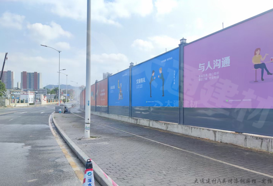 烤漆鋼圍擋a款-深圳北站市政圍擋施工工程案例-A/B/C類圍擋-深圳市大通建材有限公司鋼圍擋生產定制廠家