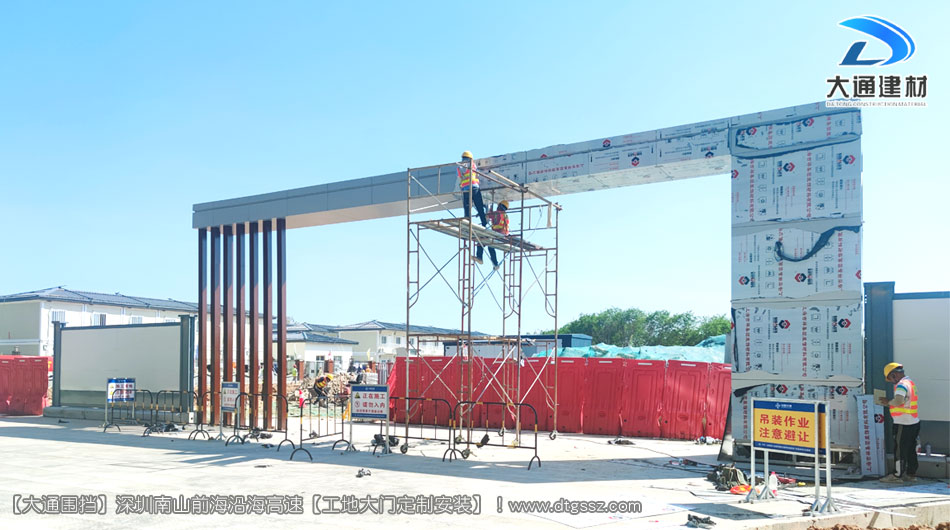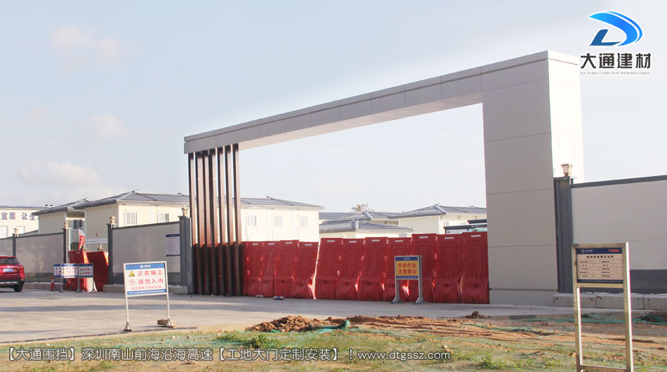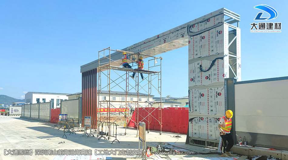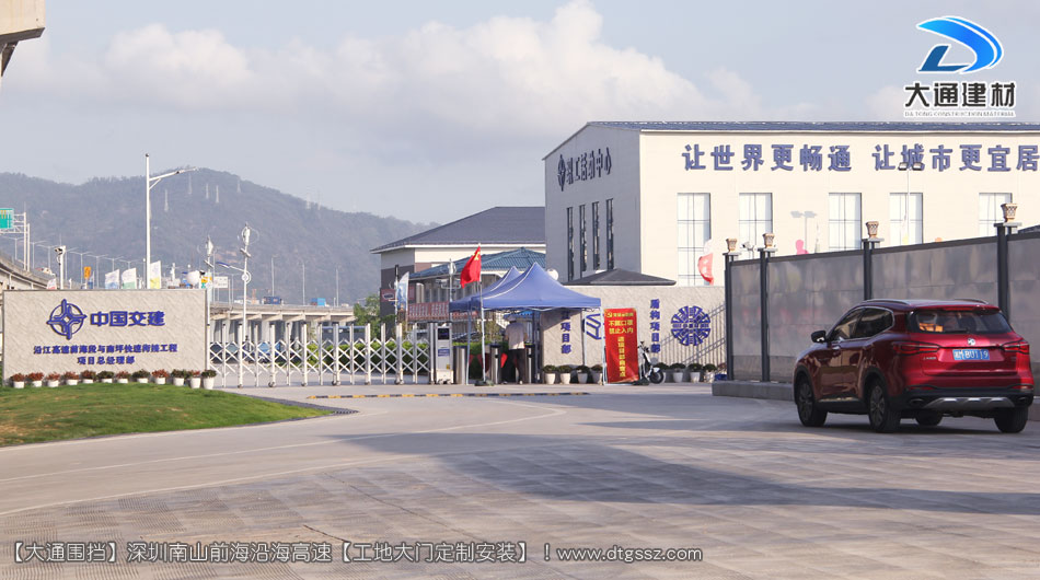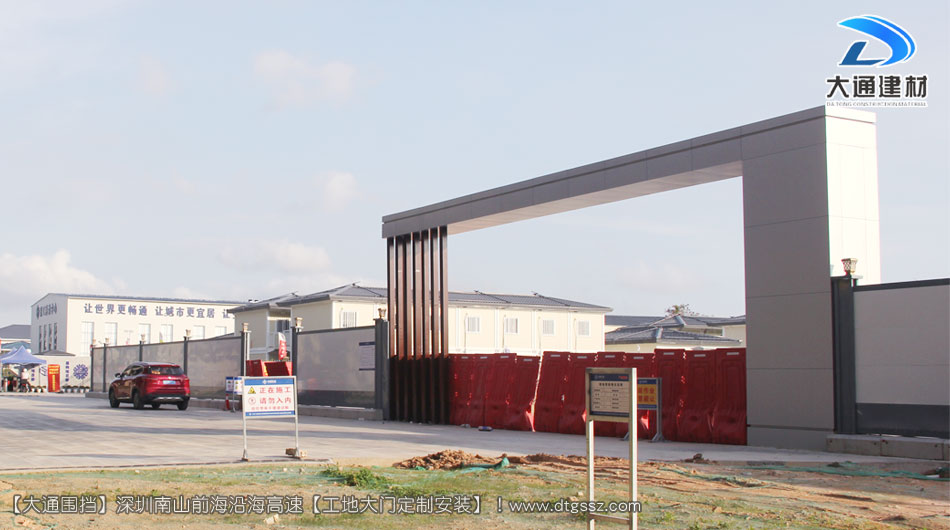 深圳南山前海沿海高速項目部工地大門定制-工地大門-深圳市大通建材有限公司鋼圍擋生產定制廠家