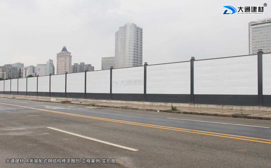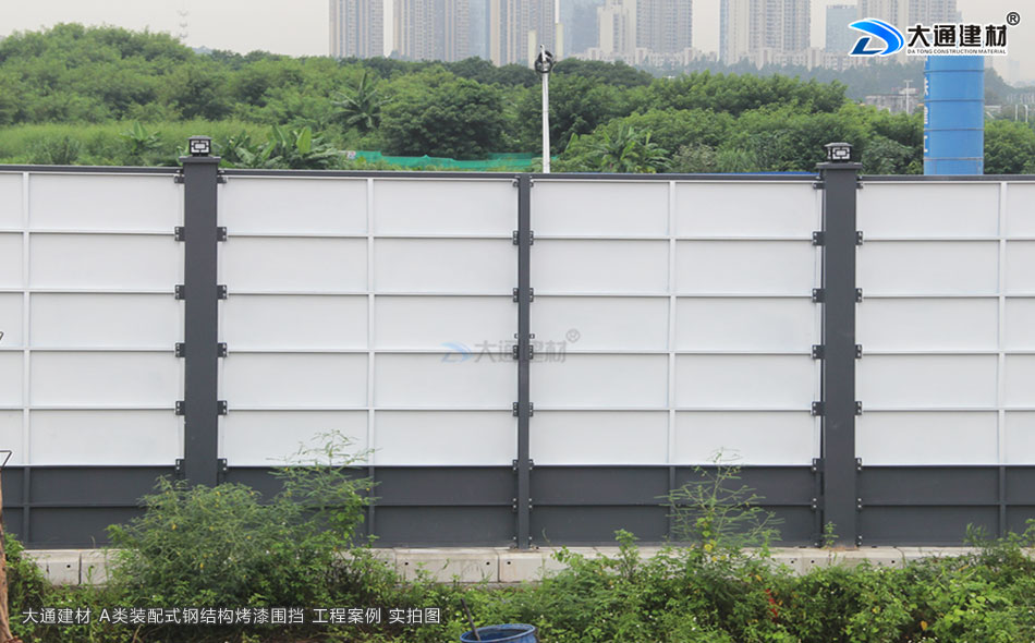上述圖片展示的是 大通建材裝配式鋼結構圍擋烤漆A款定制4米高+圍擋基礎塊 實拍案例圖