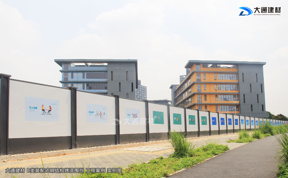 深圳市大通建材有限公司生產的符合深圳標準的裝配式B型圍擋,是一款新型鋼結構圍擋,具體有美觀、環保、抗風力強等特點,已廣泛應用到深圳特區建設的各類施工工程項目中,以下展示的圍擋圖片是大通裝配式B型圍擋應用到深圳龍華觀瀾人民路的工程案例。