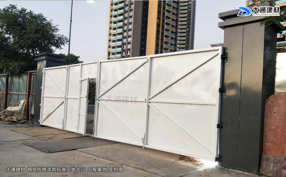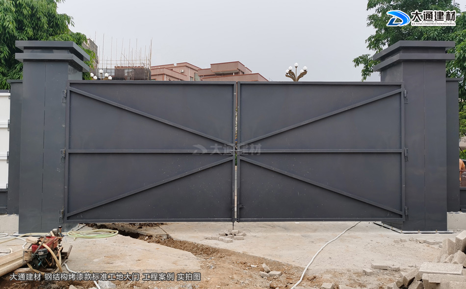 我們知道現在市政要求基本上每一個項目施工工地現場都需要安裝圍擋護欄后,方可施工,而施工現場工地大門基本是伴隨著施工圍擋存在的。今天大通小編與大家看看大通鋼結構烤漆款標準工地大門有哪些款式。