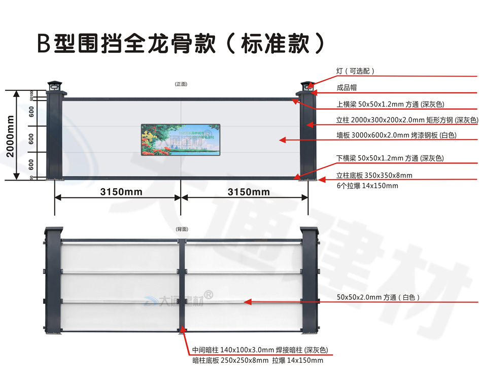 B型圍擋-2米高新型鋼圍擋-B型圍擋全龍骨款(標(biāo)準(zhǔn)款)
