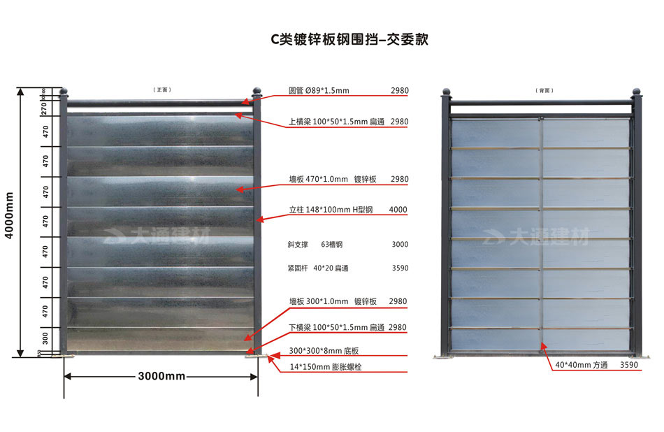 深圳市大通建材 C類鋼結(jié)構(gòu)圍擋 鍍鋅板 H型鋼 4米高定制款 產(chǎn)品特點(diǎn):