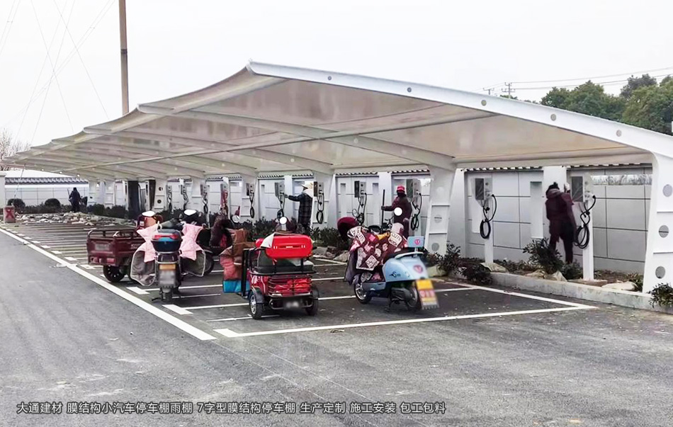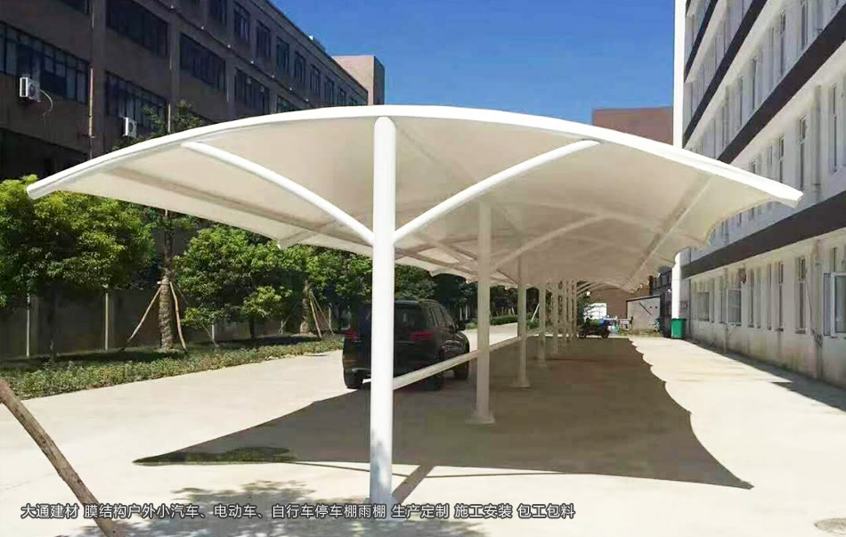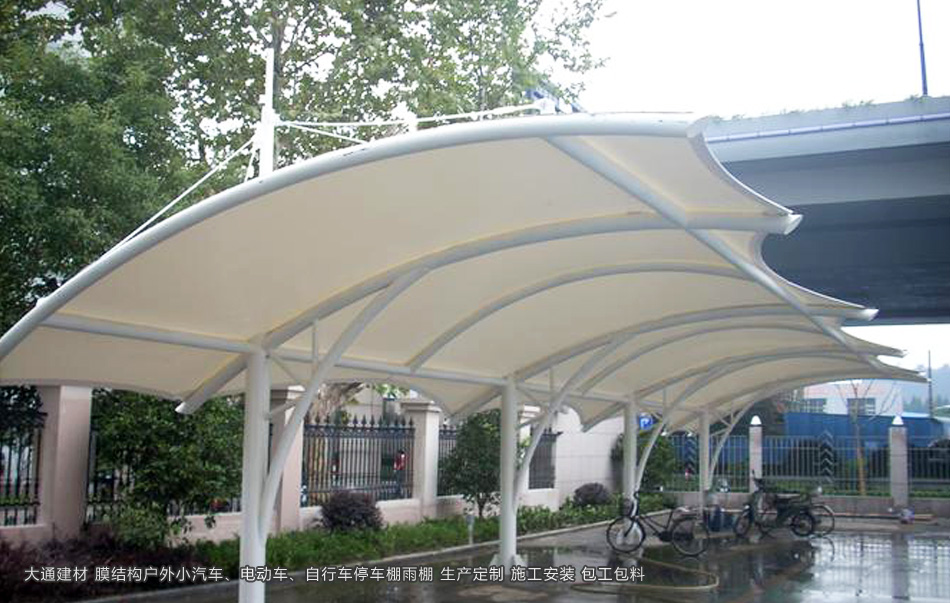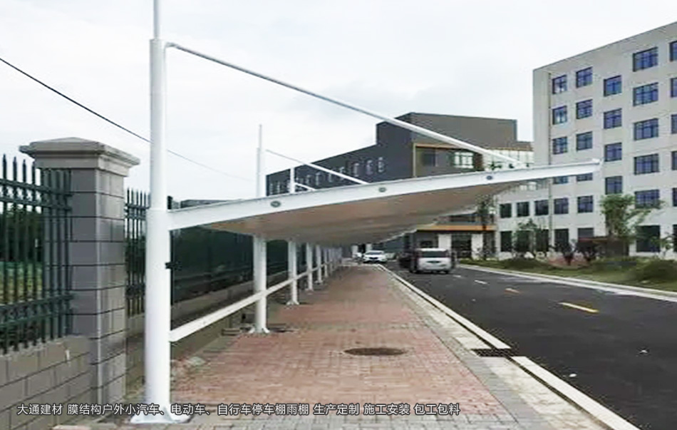 鋼膜結(jié)構(gòu)電動車自行車停車棚雨棚是指一種采用鋼結(jié)構(gòu)和膜材料相結(jié)合的停車設(shè)施。它以其獨特的造型、輕盈的結(jié)構(gòu)和實用的功能,受到了廣泛的關(guān)注和應(yīng)用。在城市道路、商業(yè)廣場、住宅小區(qū)等場所,都可以看到它的身影。深圳市大通建材鋼膜結(jié)構(gòu)停車棚生產(chǎn)源頭廠家 專業(yè)團(tuán)隊 可按實際需求定制化生產(chǎn) 可包工包料